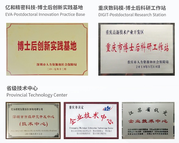 億和ホールディングスはポスドク科學(xué)技術(shù)ワークステーション及びポスドクイノベーション実踐拠點(diǎn)を有しており、完全子會(huì)社の9社が國定ハイテク企業(yè)に認(rèn)定され、その中の3社が広東省定技術(shù)センターに認(rèn)定されました。